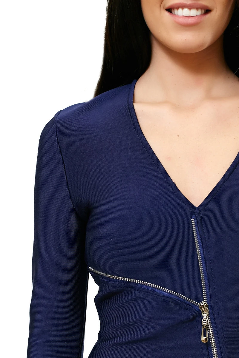 Cut from our luxury bandage material with over sized zipper detail to highlight & enhance your curves!