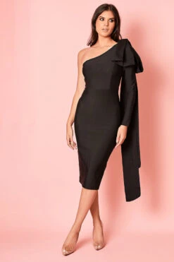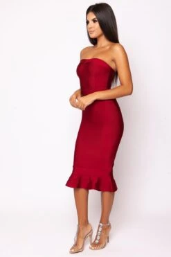 Adore Antoinette’s deep off the shoulder cut and feminie frill detail! Set in the prettiest of pinks, featuring a bodycon style fit and a silhouette enhancing midi cut. Antoinette is a perfect choice for attending a day at the races! Model is 5ft8 wearing a size 8.