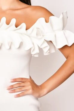 Antoinette – Pale Pink Frill Off The Shoulder Bodycon Dress