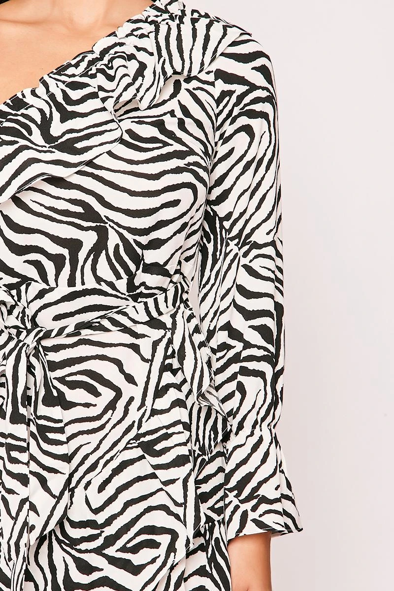 Charlie is a perfect go to day dress! Black and white zebra print one shoulder dress, featuring frill detail and tie waist. Style with flatforms for a cute day look or barely there heels for a touch of glam!