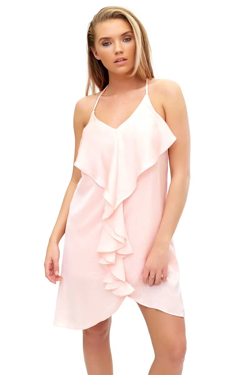 Love Francessia chic frill detail! Set in the prettiest of pinks, V neckline and an open back cut. We are seriously crushing over this shift dress styled with our Perle wedges! Model is 5ft8 wearing a size small. Regular fit.