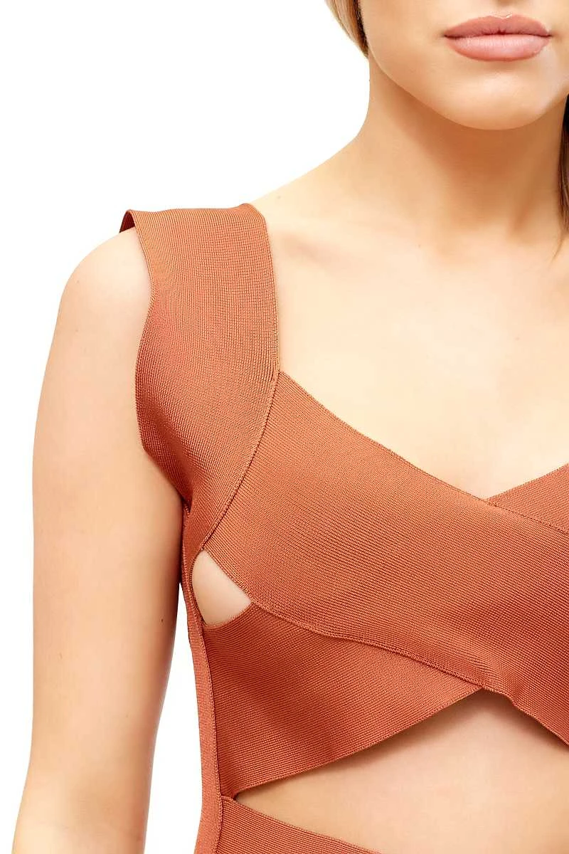 Love Liliana’s super gorgeous rust tone & sexy crossover bust and cut out waist details. Made from our premium thick bandage material, Liliana is finished of perfectly with reverse gold zipper. Model is 5ft5 wearing a size small.