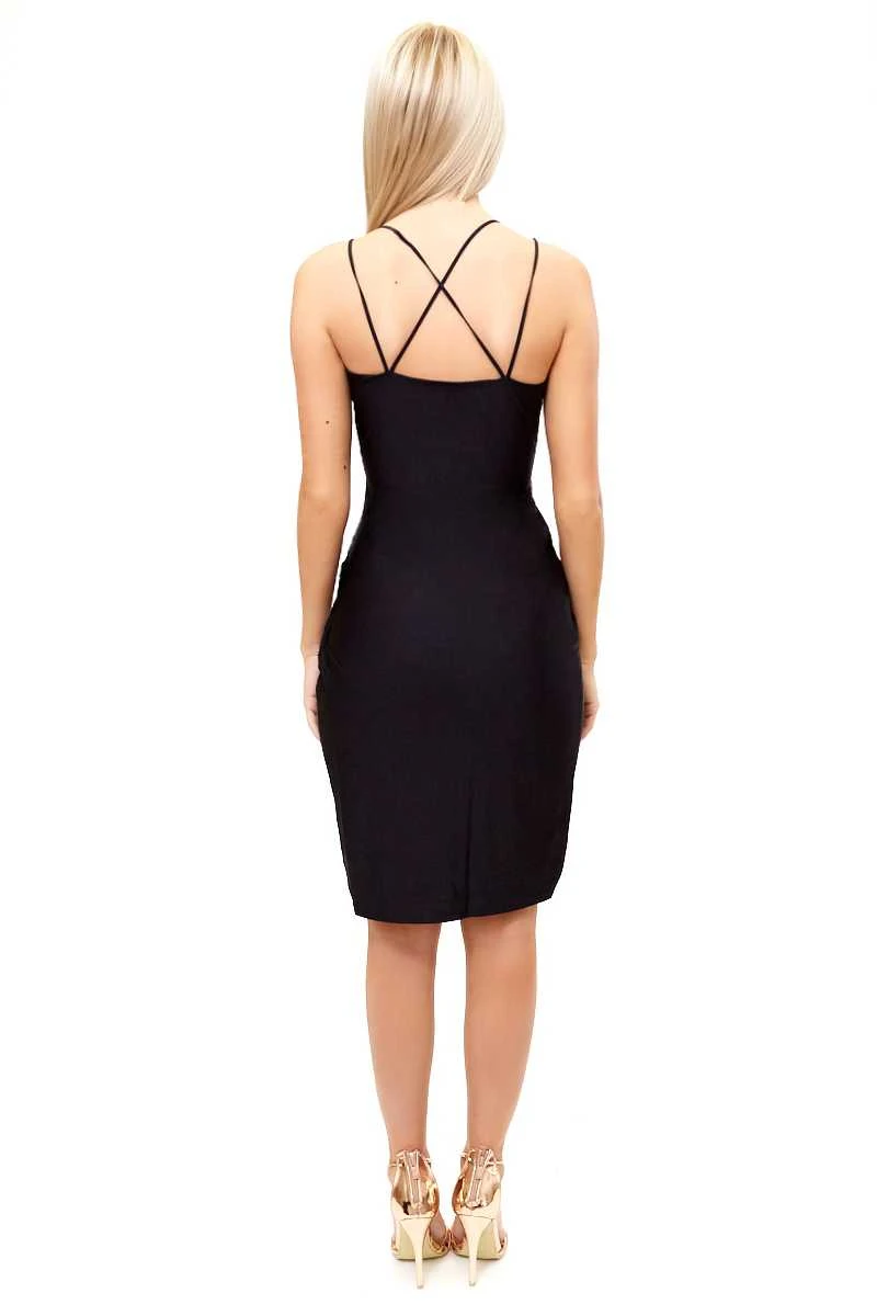 Lilith – Black Cami Gathered Wrap Dress