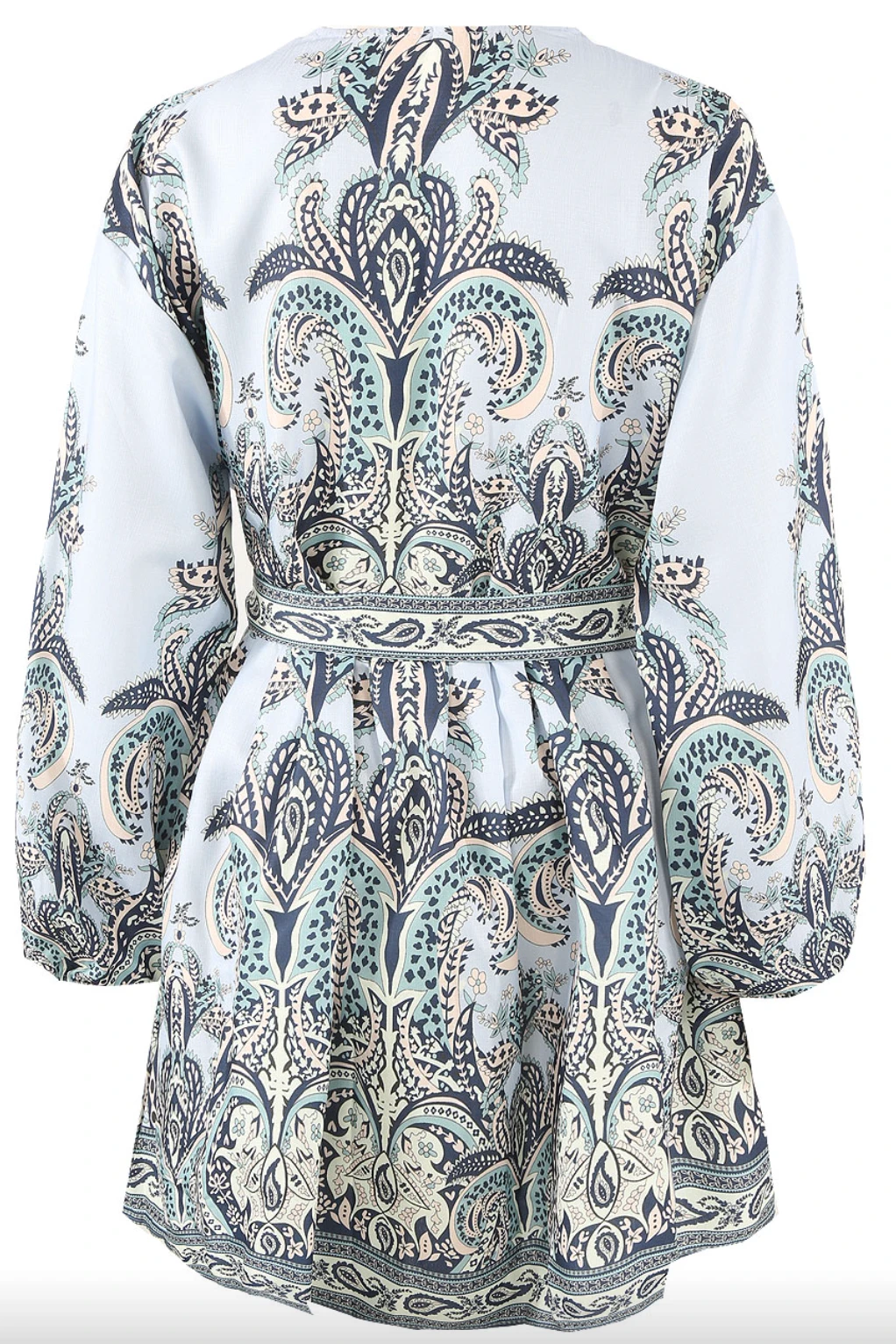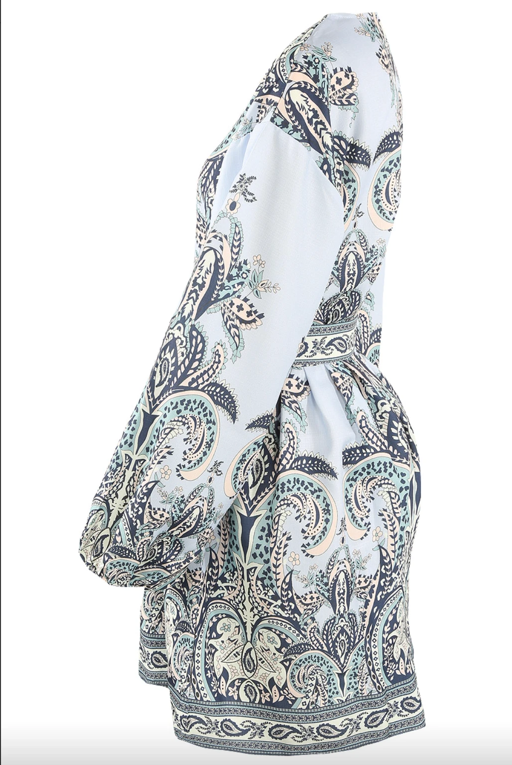 The chicest of day dresses we ever did see! Love the gorgeous paisley print, V neck cut and long puff sleeves. Finished perfectly with a belt to highlight your waist.Â