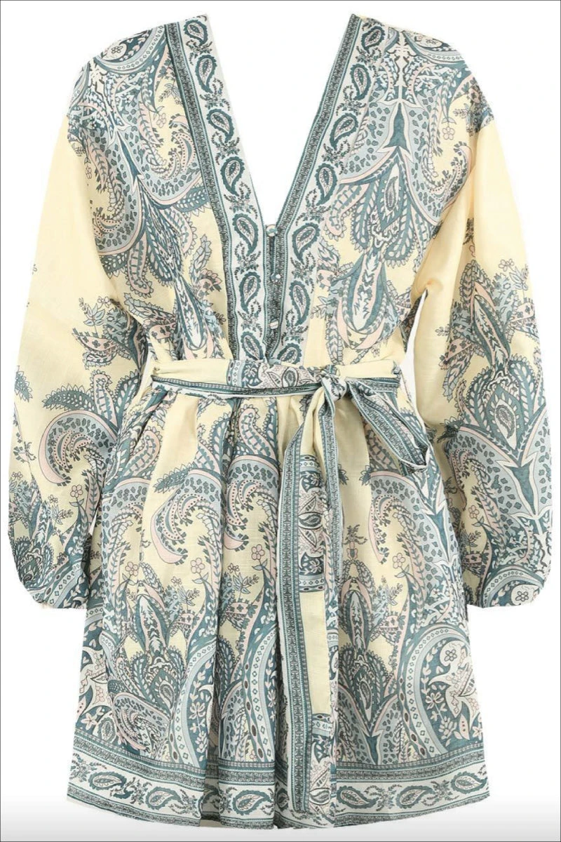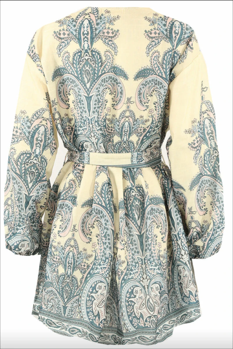 Marquis – Lemon Paisley Belted Flare Mini Dress