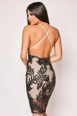 Zofia – Black Sequin Leaf & Mesh Bandage Dress