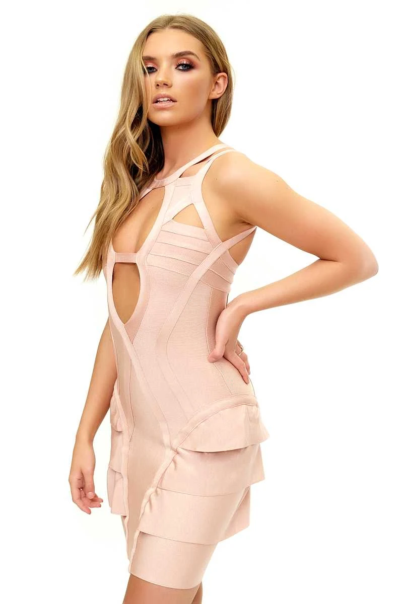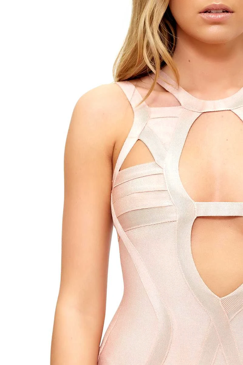 Pretty pink tones with peep-a-boo cut and structured design! Produced from our luxurious bandage material!
